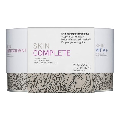 Skin Vit A+ : Rice Hull (Ground), Hydroxypropylmethyl Cellulose (Capsule Shell), Vitamin A (Retinyl Palmitate), Vitamin D3 (Cholecalciferol), Capsule Colour: Titanium Dioxide.) Skin Antioxidant : Rice Hull (Ground), Hydroxypropylmethyl Cellulose (Capsule Shell), Lutein (Lutein 10%), Betacarotene (From Dunaliella Salina Algae), Grapeseed (Vitis Vinifera) Extract (95%Opc), Lycopene (Solanum Lycopersicum) Fruit, Green Tea (Camellia Sinensis) Extract (50% Polyphenols), Turmeric (Curcuma Longa) Dried Root Powder, Bilberry (Vaccinium Myrtillus) Dried Fruit Powder, Capsule Colour: Copper Complex Of Chlorophyllins, Titanium Dioxide.