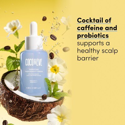 Aqua/Water/Eau, Butylene Glycol, Glycerin, Propanediol, Biotinoyl Tripeptide-1, Larix Europaea Wood Extract, Camellia Sinensis Leaf Extract, Caffeine, Panthenol, Cocos Nucifera (Coconut) Oil/Cocos Nucifera Oil, Lactobacillus Ferment Lysate, Oleanolic Acid, Glycine, Apigenin, 1,2-Hexanediol, Trisodium Ethylenediamine Disuccinate, Caprylhydroxamic Acid, Sorbitol, Lactic Acid, Xanthan Gum, Ceratonia Siliqua (Carob) Gum/Ceratonia Siliqua Gum, PPG-26-Buteth-26, PEG-40 Hydrogenated Castor Oil, Potassium Sorbate, Zinc Chloride, Sodium Benzoate, Sodium Metabisulfite.