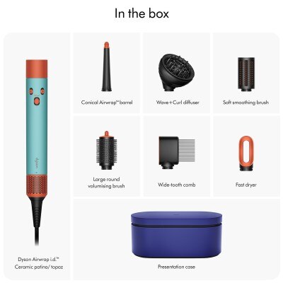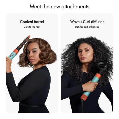 Dyson Airwrap i.d.™ multi-styler and dryer Curly+Coily in Ceramic Patina & Topaz. Dry. Curl. Shape. Smooth and hide flyaways.