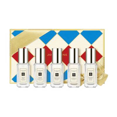 Peony & Blush Suede Cologne 9ml The gift of fragrance exploration. This festive gift box contains five timeless Jo Malone London colognes in 9ml bottles, including zesty Lime Basil & Mandarin, luscious English Pear & Freesia and fresh Wood Sage & Sea Salt. Each one can be worn individually or layered together for a festive match.