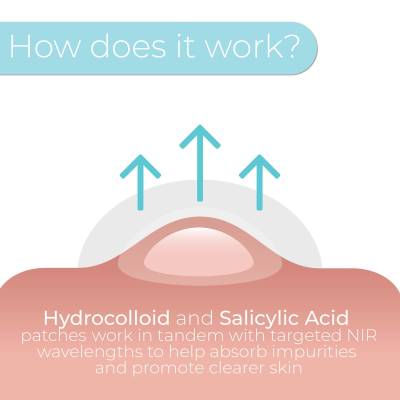 Achieve clearer and smoother looking skin with the rechargeable STYLPRO LED SPOT & BLEMISH PATCH and 20x STYLPRO Hydrocolloid and Salicylic Acid Sticky Patches. The LED Device features 6x Blue (415 nm) and 6x NIR (830 nm) LEDs. The Sticky Patches help absorb impurities (or gunk), exfoliate, and help protect the skin from picking. Also suitable for people with blemish-prone skin.