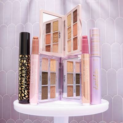 Using a fluffy shadow brush, sweep on festive shades from the Tartelette™ palette.