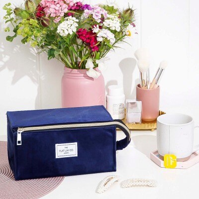 The Flat Lay Co. Open Flat Makeup Box Bag in Deep Blue Velvet 1each