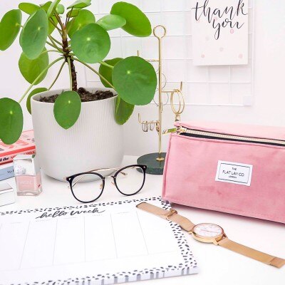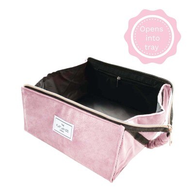 The Flat Lay Co. Open Flat Makeup Box Bag in Pink Velvet 1each