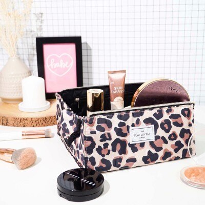 The Flat Lay Co. Open Flat Makeup Box Bag Leopard Print 1each